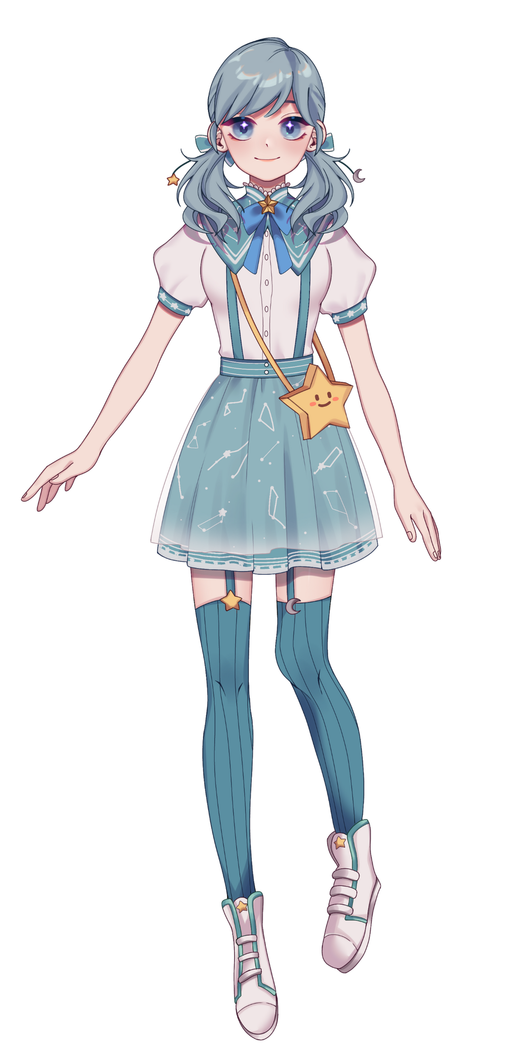 A fallen starchild that came from teh cosmos. Lunaly's tears turn into bright stars and she uses the power of the celestial bodies to luminate and motivate the people around her. She shines as bright as the moon, but be careful of her dark side.
